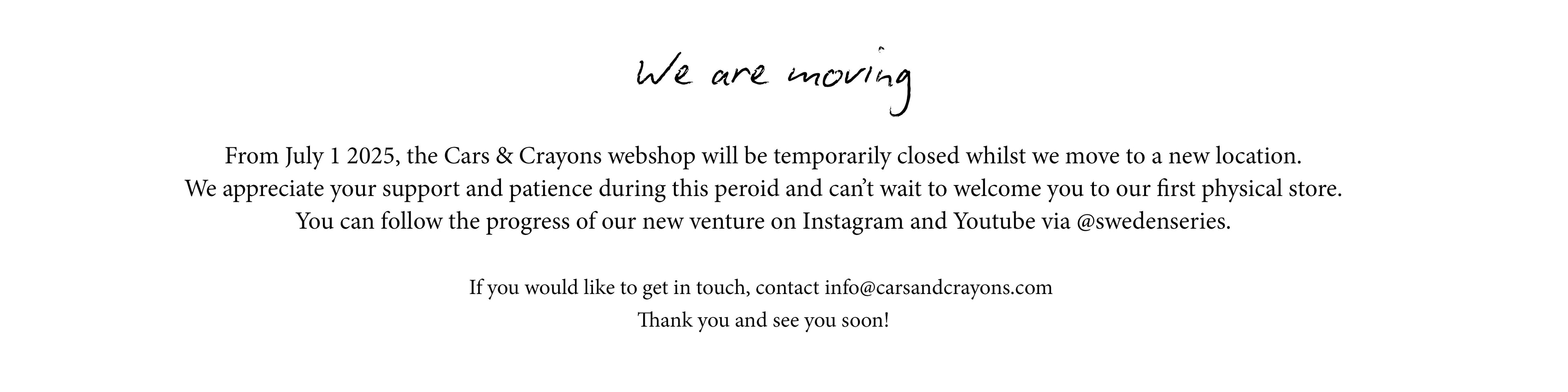 Big news from Cars & Crayons! We're packing up our crayons (and cars!) and heading north! From July 1st 2025, our webshop will be temporarily closed as we make an...
